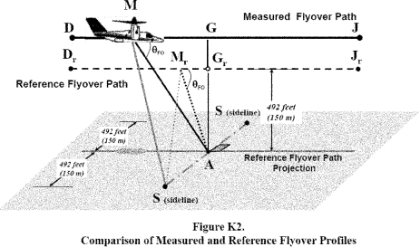 (1) The centerline noise measurement flight path reference point, designated A, is located on the ground 492 feet (150 m) vertically below the reference flyover flight path. The measurement point is defined by the flyover reference procedure in section K6.3 of this appendix;