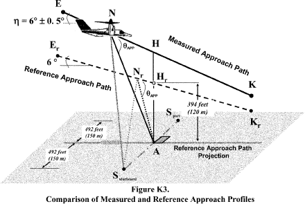 K7.10 During the approach procedure, the tiltrotor must establish a stabilized constant speed approach and fly between approach angles of 5.5 degrees and 6.5 degrees throughout the 10 dB-down time interval.
