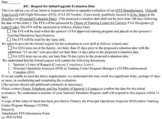 b. Examples of a special evaluation include an evaluation conducted after an FFS is moved, at the request of the TPAA, or as a result of comments received from users of the FFS that raise questions about the continued qualification or use of the FFS.